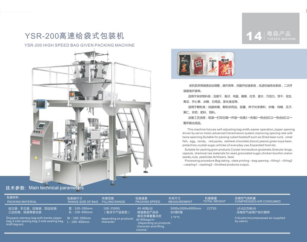 YSR-200 HIGH SPEED BAG GIVEN PACKING MACHINE