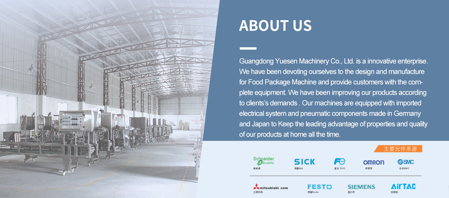 Guangdong Yuesen Machinery Co., Ltd. is an innovative enterprise integrating scientific research, manufacturing and sales, focusing on the R & D and manufacturing of food, beverage, dairy, packaging and plastic machinery.