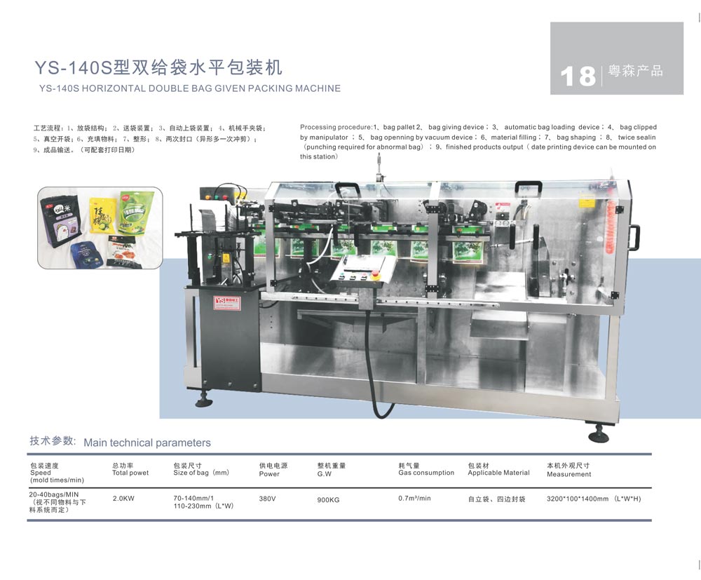 YS-140S HORIZONTAL DOUBLE BAG GIVEN PACKING MACHINE