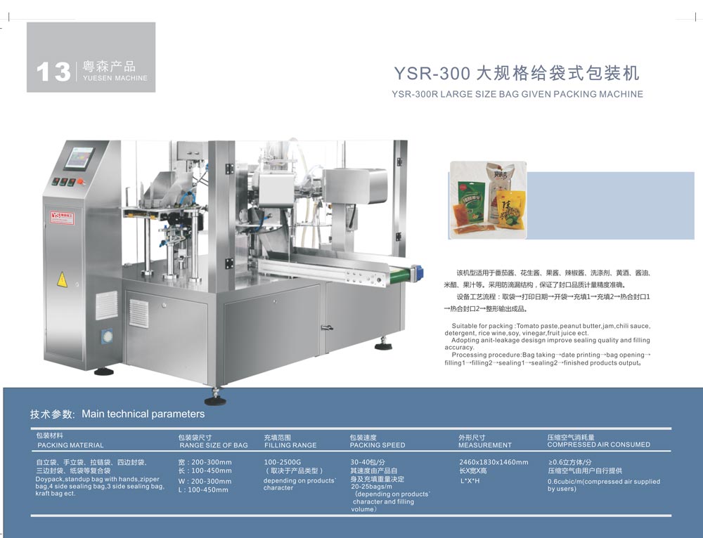 YSR-300R LARGE SIZE BAG GIVEN PACKING MACHINE